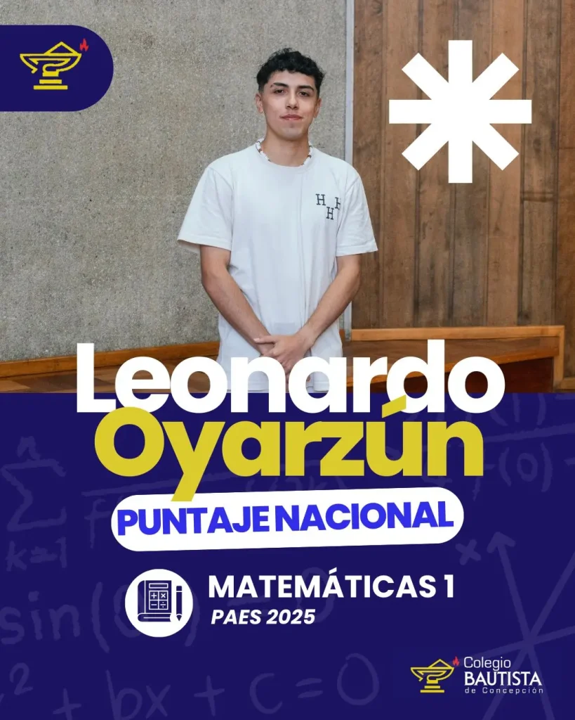 Con profunda alegría y gratitud, compartimos con nuestra comunidad educativa una noticia que marca un antes y un después en la historia de nuestra institución: Leonardo Oyarzún, estudiante de nuestra casa de estudios, ha alcanzado el Puntaje Nacional (1.000 puntos) en la prueba PAES de Competencia Matemática (M1).